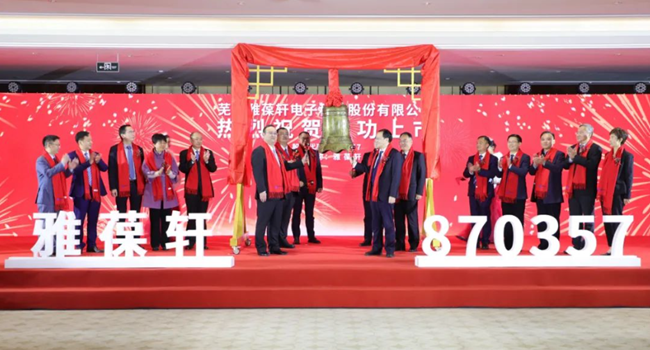 11月18日,芜湖雅葆轩电子科技股份有限公司首次公开发行A股并在北交所上市,这是我市首家北交所上市公司。副市长蔡毅,市地方金融监管局局长徐礼阳, 市财政局副局长王东祥,县委副书记、县长强健,县人大常委会主任巫军,县政协主席夏冰馨,县领导潘吉平,国元证券股份有限公司党委副书记、总裁沈和付, 芜湖雅葆轩电子科技股份有限公司董事长胡啸宇等出席仪式,共同为芜湖雅葆轩电子科技股份有限公司上市敲钟。