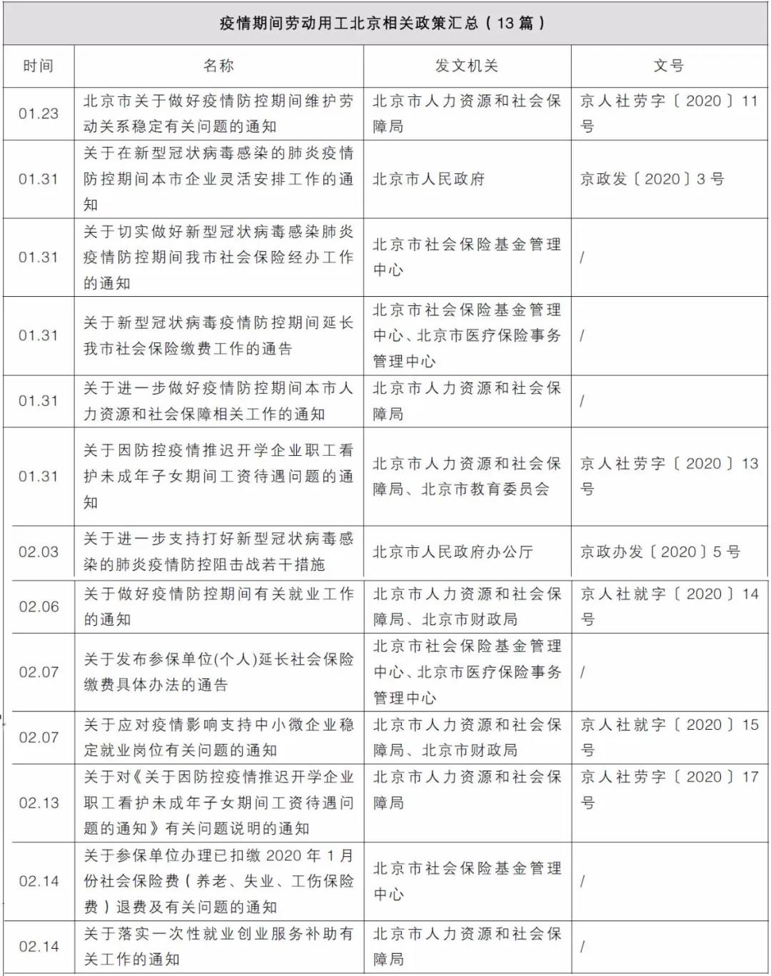 (3)劳动关系保护。根据北京市《关于因防控疫情推迟开学企业职工看护未成年子女期间工资待遇问题的通知》,看护期间不得解除劳动合同,劳动合同到期的,顺延至紧急措施结束。