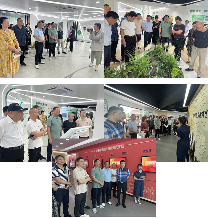 首先,会员们参观了南陵县“两山”实践创新基地展示馆,位于南陵县城东滨河公园内,布展面积550㎡。展厅着力体现南陵两山文化特色,内容全面、重点突出,会员们在讲解员的带领下参观了“两山”理论科普、南陵城市特色、实践创新过程、转化成果展示、地域特色推荐等板块,亲身体验了数字影院、互动体验等功能空间。