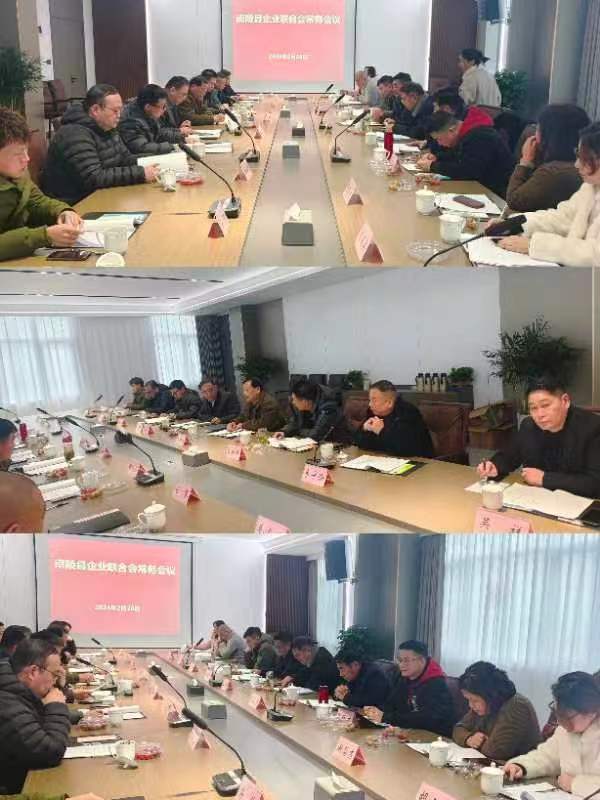 2024年2月28日下午在南陵县永兴米业有限公司会议室,谢玉成会长主持召开了县企联会常务会议。参加人员有:创会会长杨梅生,执行会长肖明海、胡啸宇、李守伦、梁欣、执行会长兼秘书长吴祥,常务副会长陶老夯、张文平、张致才、胡明胜、谢菊秀、胡建英、毛尚辉,监事长张玉坤,应到15人,蒋马飞、刘芬因事请假,实到13人。县经信局企业服务中心负责人曹辉列席。符合章程规定,会议议程如下: