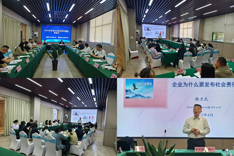 为进一步增强企业社会责任担当意识,提升县域企业在 社会责任报告编写方面的能力,熟知社会责任报告编写的流 程。4月25日,南陵县企联会举办了“2025年企业社会责 任报告编写培训会”,县企联执行会长、芜湖馨源海绵有限 公司董事长李守伦主持,特邀请芜湖市企联党支部书记、市 人大原副主任、一级巡视员韩卫民主任作专题报告。三十余 家会员企业参会聆听。